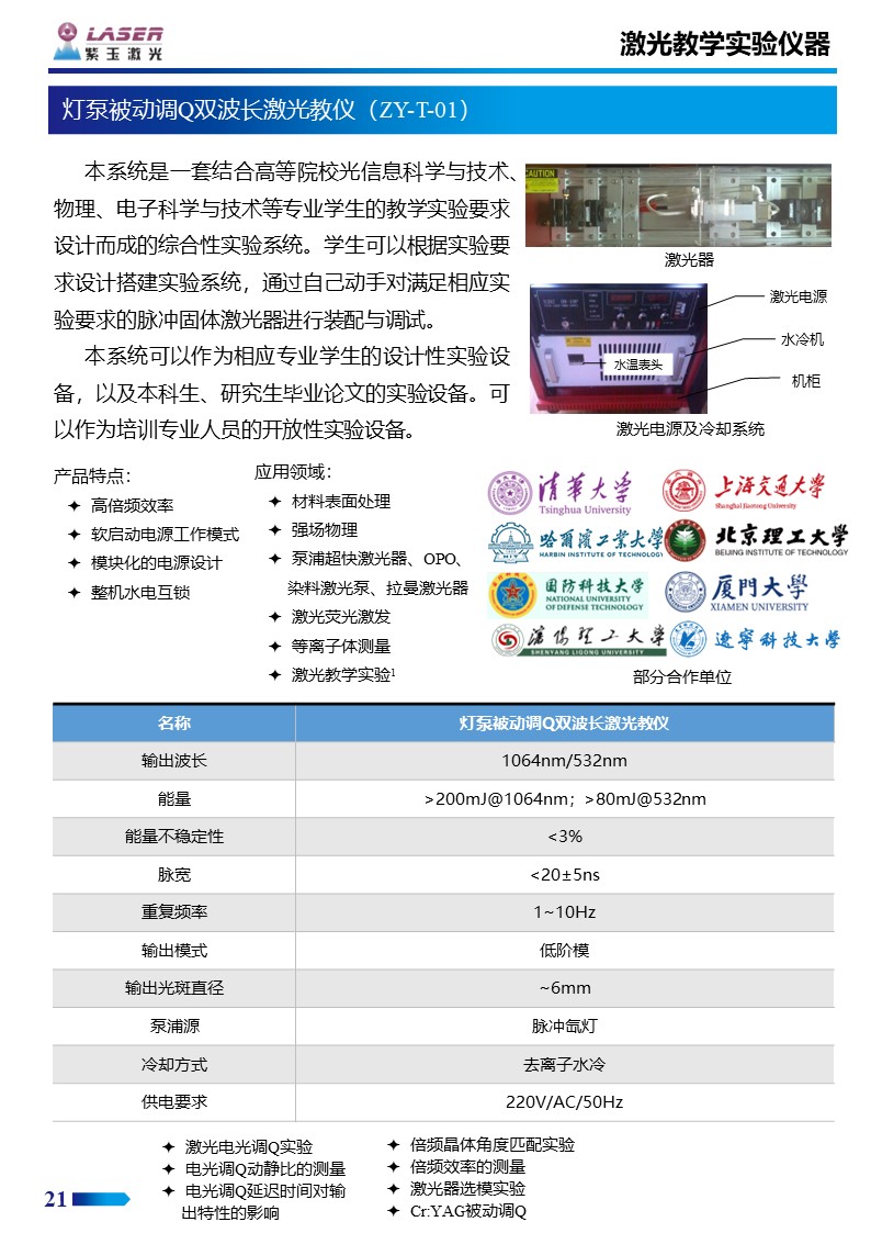 燈泵被動調(diào)Q雙波長激光教儀(ZY-T-01)